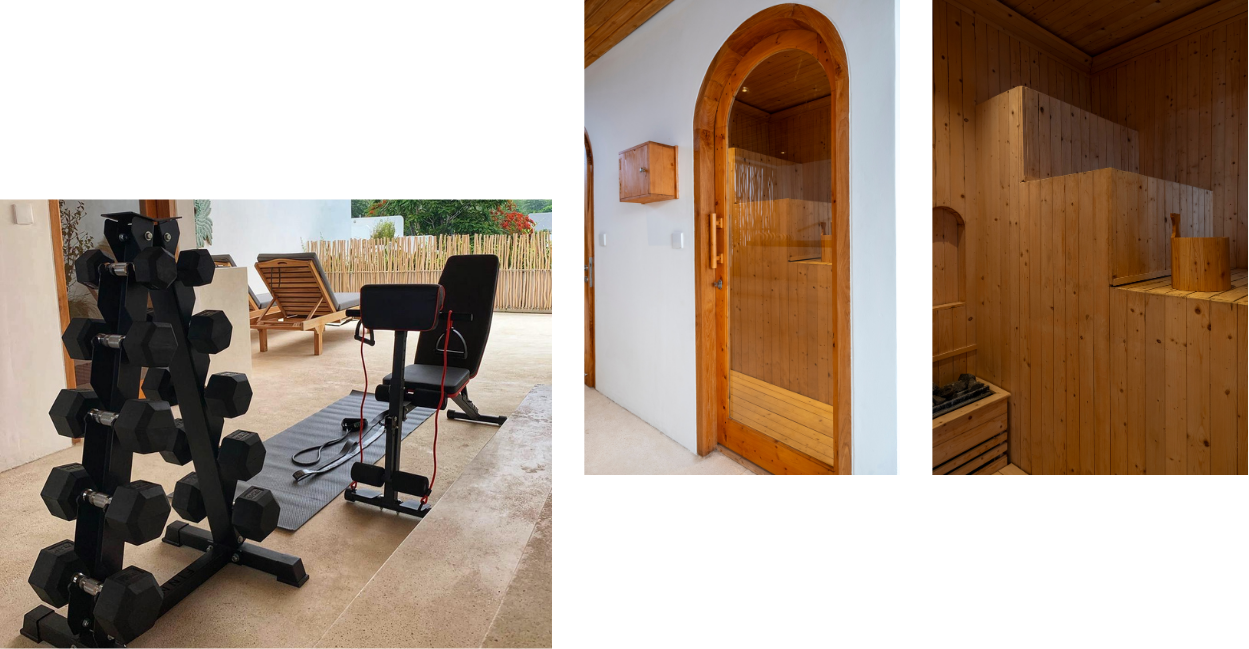Recharge your energies in our meditation area specially designed to offer privacy and peace, or choose to spend a few hours watching the sunrise or sunset, sipping a drink before lunch or dinner on the beautiful terrace enriched with tropical plants. The villa also includes a lounge area, gym area, sauna, and outdoor shower. Villa Euforia comes with a 32-inch TV, Bluetooth sound system, high-speed internet, and daily cleaning 7/7 included at no additional cost.