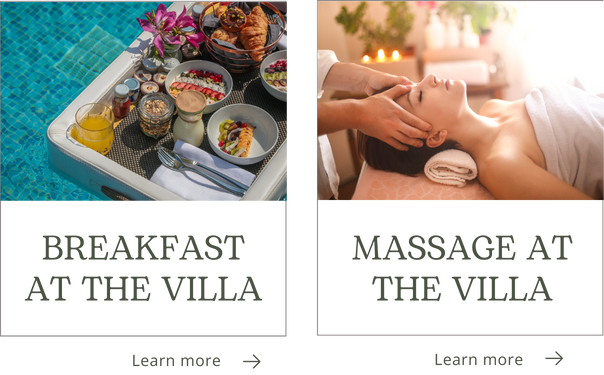To make your stay even more memorable, our staff offers personalized additional services such as late check-out, in-villa massages, personal driver, scooter rental, customized excursions, airport transfers, and discounted rates at SPAs, restaurants, and medical centers. We are a family that loves to participate in and organize parties and adores animals, but please be aware that Villa Euforia is not structured to host private parties or accommodate pets.