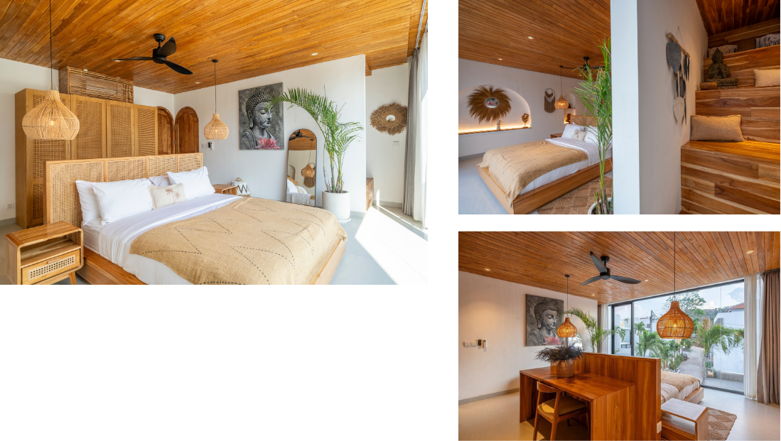 The villa built in 2024 and located in the heart of Bingin just minutes from the most important tourist locations, renowned beaches, and culinary spots. Villa Euforia by Lotus blends modernity with local Balinese charm, offering 250 square meters of space spread across three levels. The villa features a private pool, spacious living room, and a fully equipped kitchen with air conditioning and ceiling ventilation. There are two large bedrooms on different levels with King Size beds, private bathrooms, an office corner with air conditioning, safe, and ceiling ventilation.