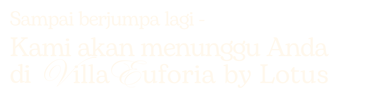 Villa ini dibangun pada tahun 2024 dan terletak di jantung kota Bingin, hanya beberapa menit dari lokasi wisata terpenting, pantai-pantai terkenal, dan tempat kuliner. Villa Euforia by Lotus memadukan modernitas dengan pesona lokal Bali, menawarkan ruang seluas 250 meter persegi yang tersebar di tiga tingkat. Vila ini memiliki kolam renang pribadi, ruang tamu yang luas, dan dapur lengkap dengan AC dan ventilasi langit-langit. Terdapat dua kamar tidur besar di lantai yang berbeda dengan tempat tidur King Size, kamar mandi pribadi, ruang kerja dengan AC, brankas dan ventilasi langit-langit.