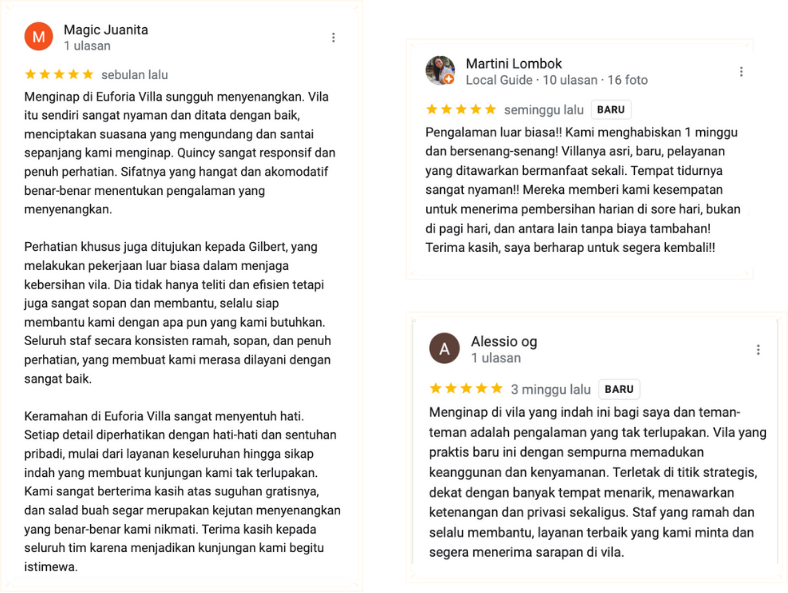 Villa Bloom by Lotus, selesai dibangun pada bulan Desember 2024, merupakan hunian mewah di kompleks 12 vila dengan keamanan 24 jam dan parkir pribadi, di jantung Tumbak Bayuh, hanya beberapa menit dari Pantai Perenanan, bar, restoran, pusat kebugaran, dan spa. Dengan luas 200 meter persegi di tiga tingkat, vila ini berperabotan lengkap dan menawarkan kolam renang pribadi yang dikelilingi oleh batu putih dan tanaman tropis, ruang tamu yang cerah dengan sofa yang nyaman, TV 32 inci, dan jendela besar yang menghadap ke taman. Memiliki 3 kamar mandi, 2 kamar tidur dengan tempat tidur king dan kamar mandi pribadi, internet berkecepatan tinggi, sistem audio Marshall, teras dengan area barbekyu, area kebugaran dan lounge. Terletak di jalan pribadi tanpa lalu lintas, vila ini menawarkan privasi dan ketenangan, namun tetap dekat dengan tempat wisata utama di Bali. Dilengkapi dengan bahan-bahan alami dan detail pengrajin lokal, ini adalah pilihan ideal untuk liburan atau masa inap yang lama, dengan layanan sempurna yang akan memastikan para tamu mendapatkan pengalaman yang tak terlupakan.